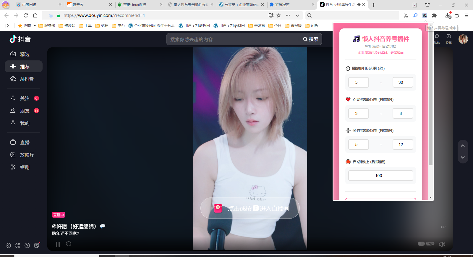 达到设定的最大视频数后,插件会自动停止并提示