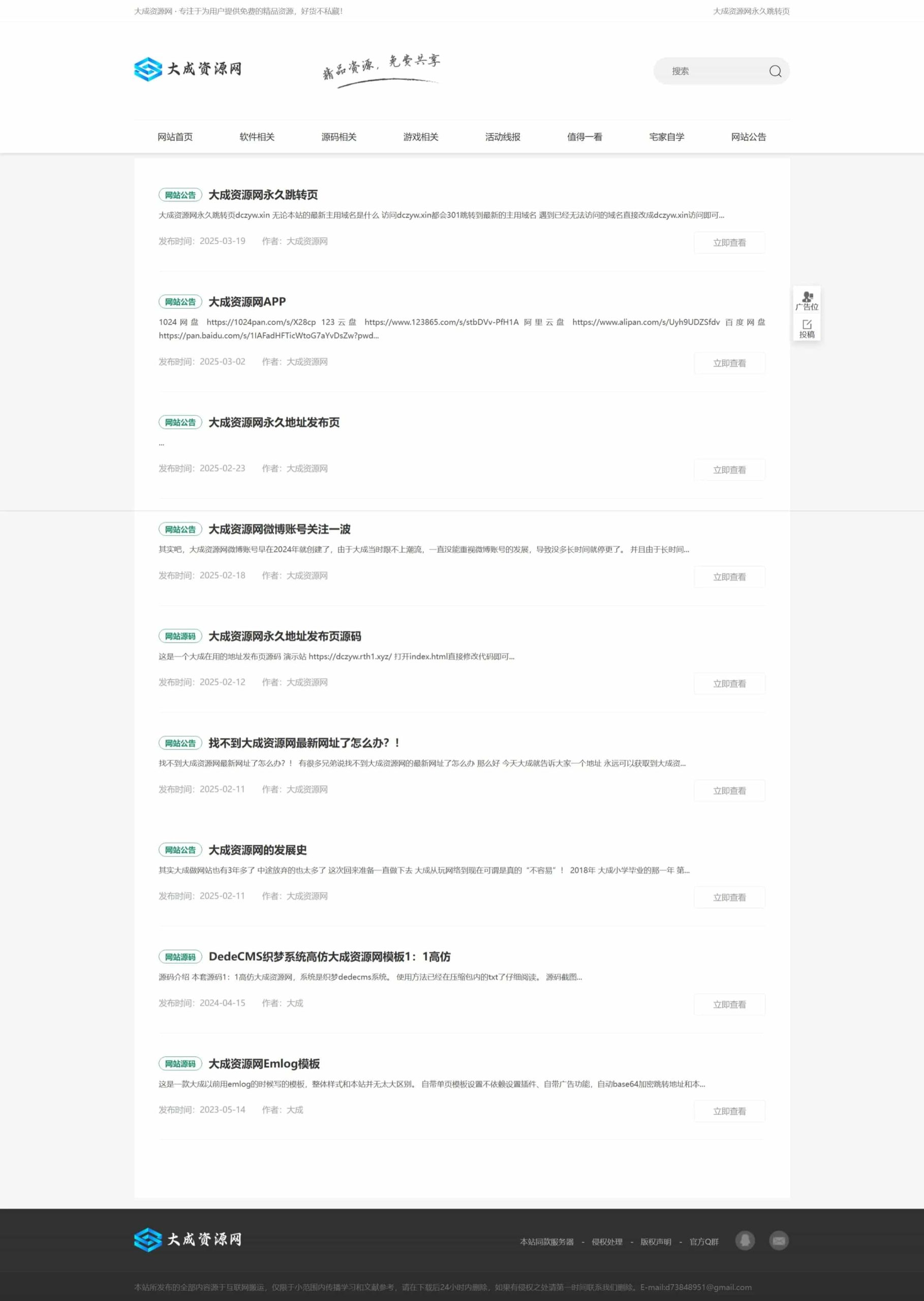 这是一套用 DedeCMS 搭建的资源网,模板是小刀娱乐网、善恶资源网的同款模板。系统非最新版,也请勿随意升级,会报错!系统部分文件代码有改动。