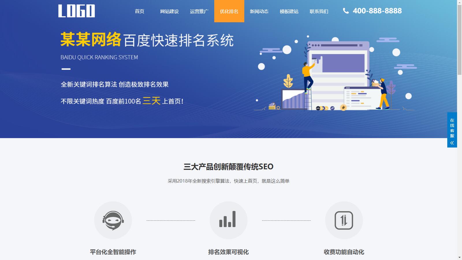 PbootCMS内核开发的网站模板,该模板适用于seo优化网站等企业,当然其他行业也可以做,只需要把文字图片换成其他行业的即可;