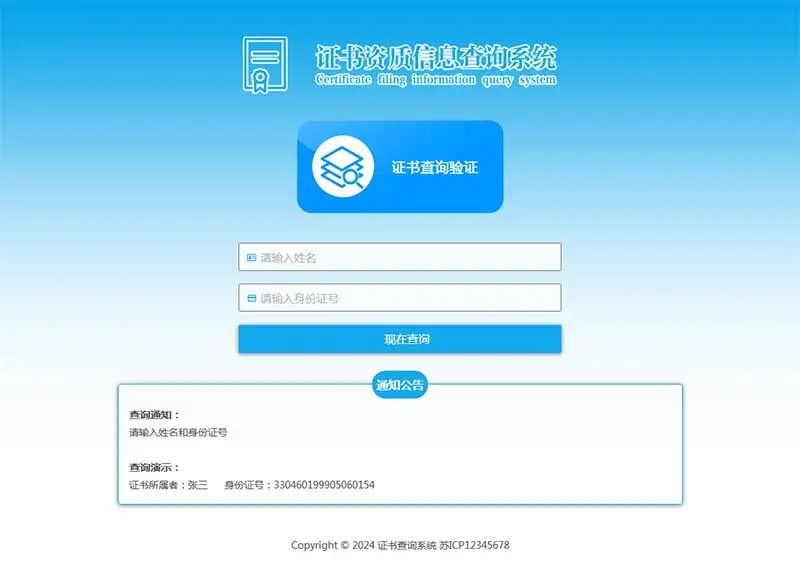 PbootCMS内核开发的网站模板,该模板适用于证书查询系统网站等企业,当然其他行业也可以做,只需要把文字图片换成其他行业的即可;